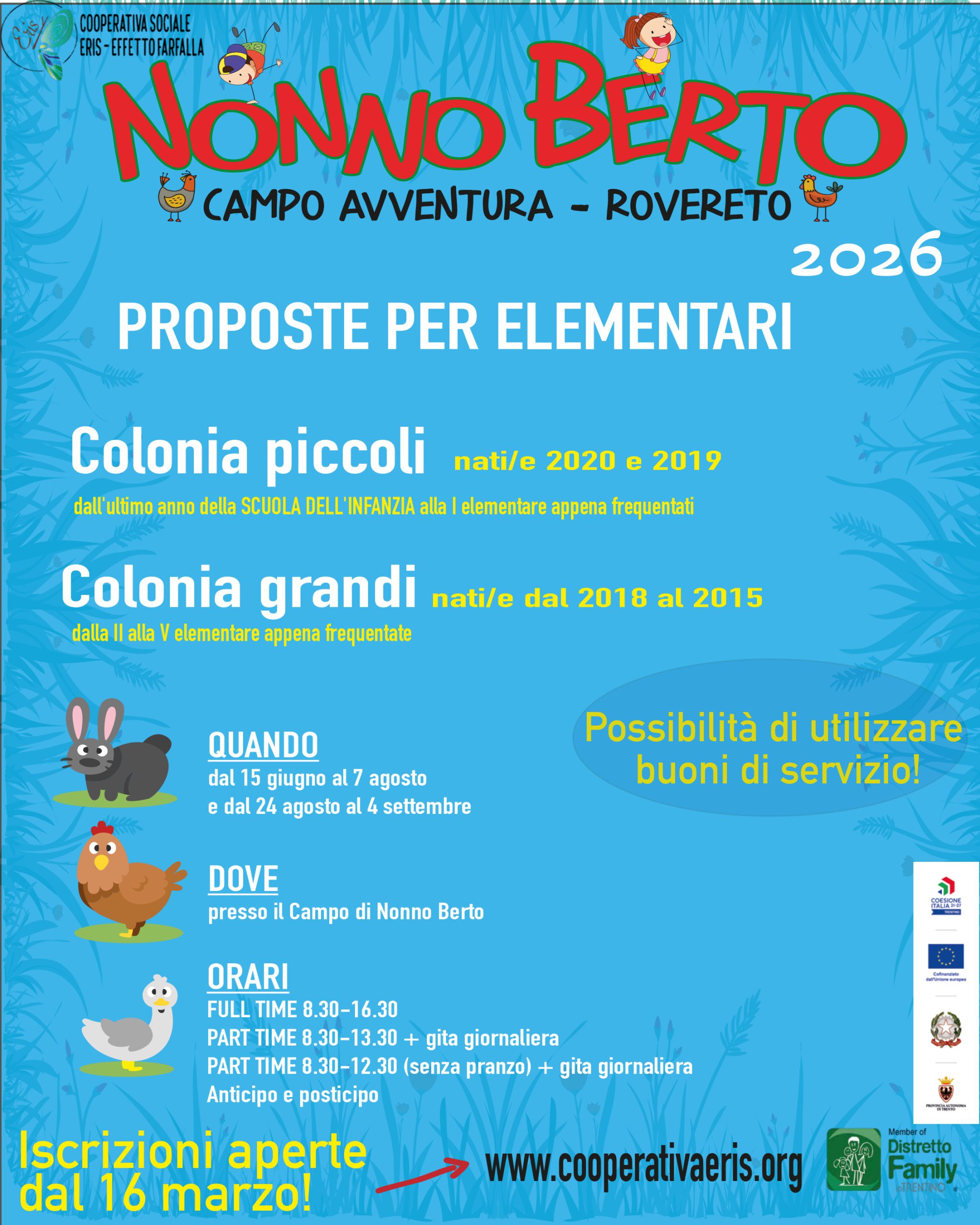 - Volontariato attivo – Nonno Berto Per tutto il periodo di apertura della colonia elementari
